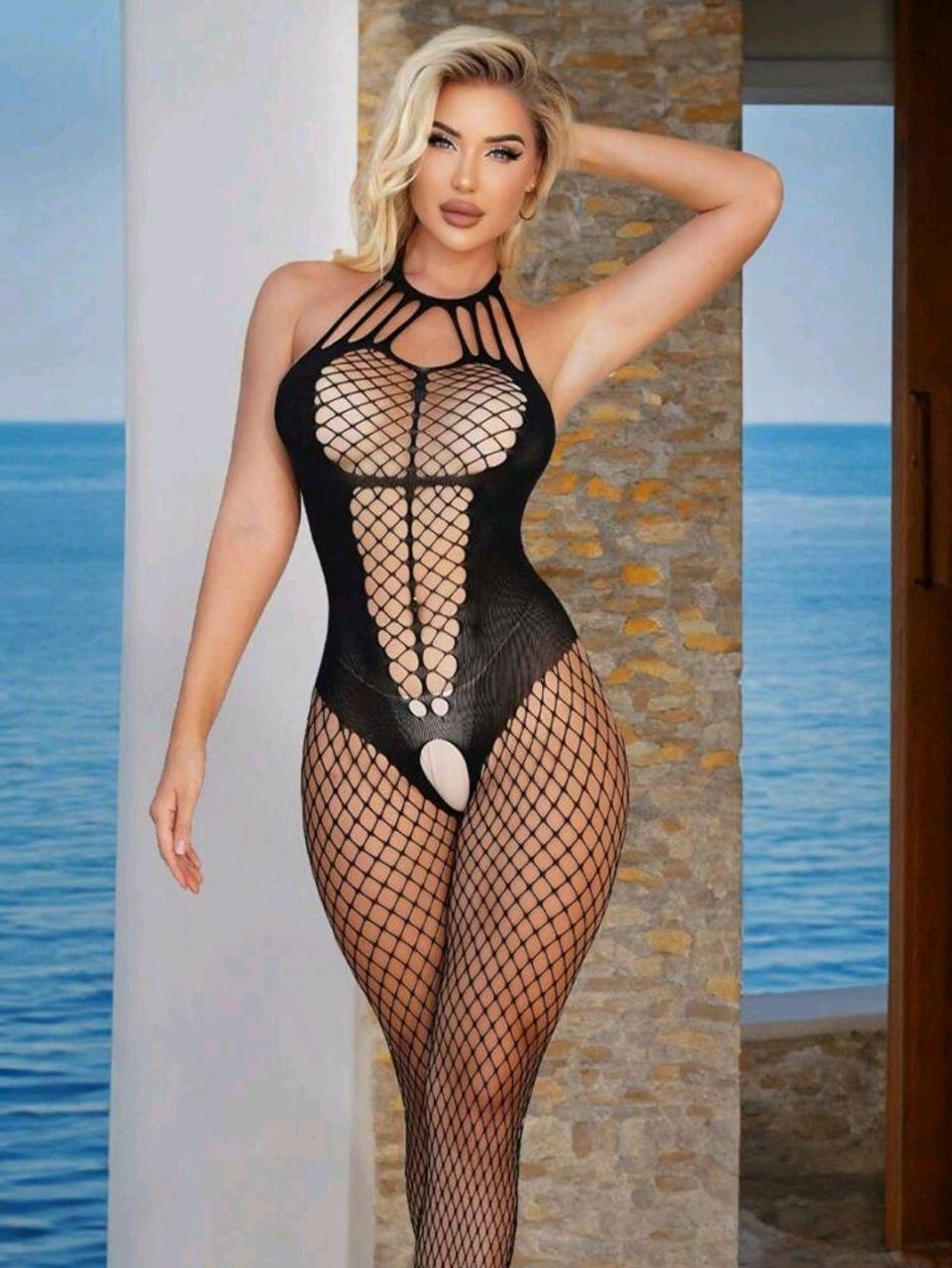 Women's Mesh Sexy Lingerie Black Fishnet Babydoll Mini Dress Free Size Bodysuit See Through Shirts