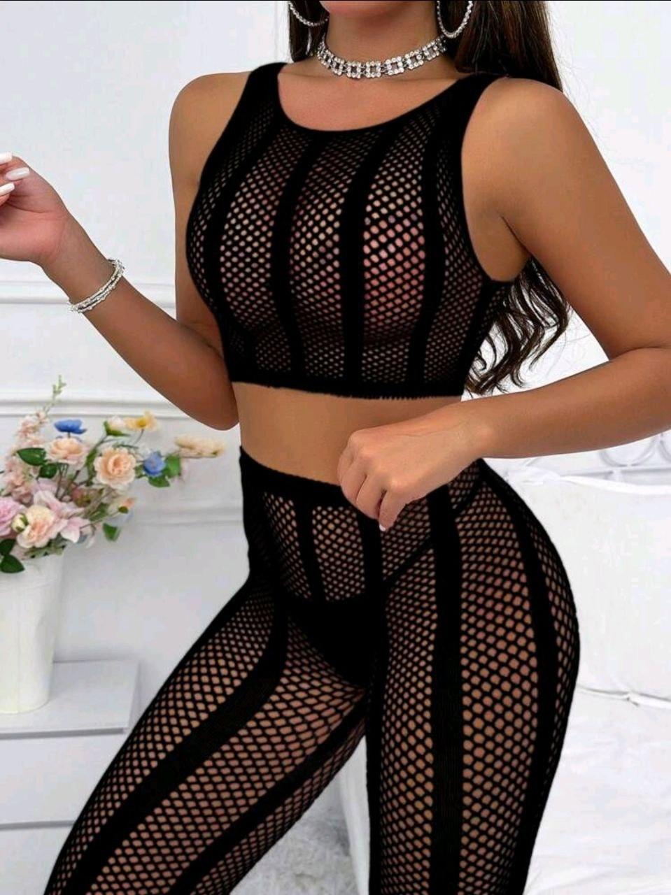 TheNight 2pcs/Set Women Sexy Sheer Mesh Sleeveless Top & Leggings Set